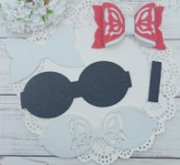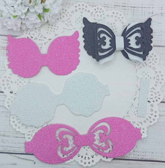 Вирубка бантик метелик біло-рожевий 7,5*6,5 см з фоамірану з глітером,набір деталей