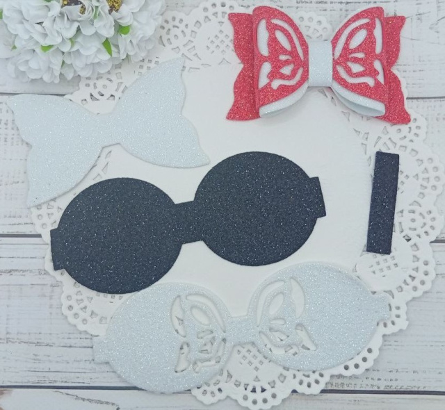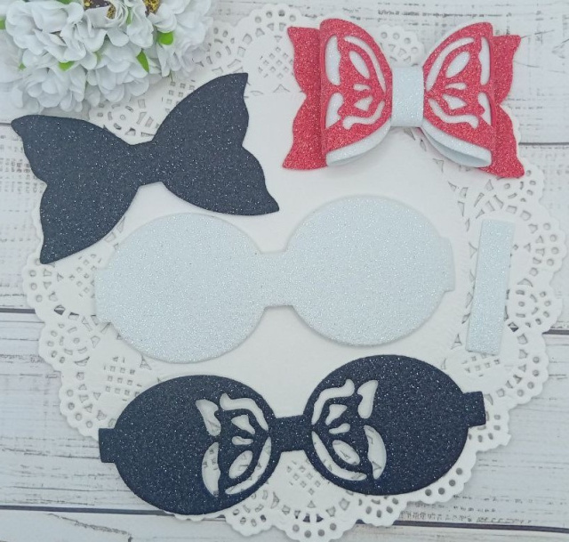 Вирубка бантик великий з бантиком чорно-білий 9,7*6 см з фоамірану з глітером,набір деталей.