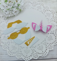 Вирубка бантик «Єдиноріг» рожево-білий 6,5*4,5 см з фоамірану з глітером,набір деталей.