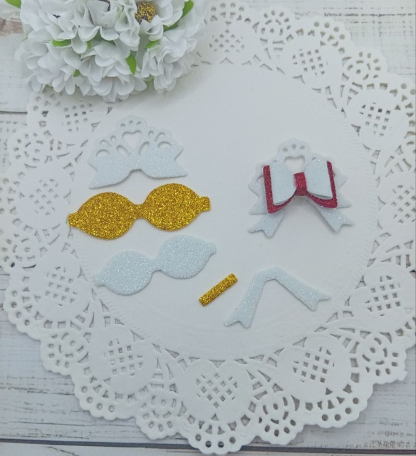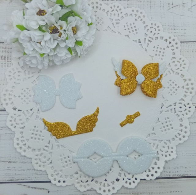 Вирубка бантик бантиком золото-білий 4,5*4,7 см з фоамірану з глітером,набір деталей.