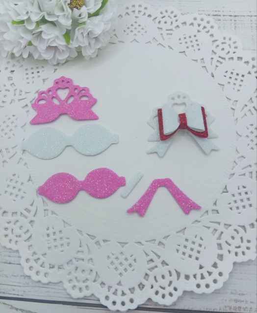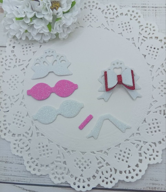 Вирубка бантик бантиком рожево-білий 4,5*4,7 см з фоамірану з глітером,набір деталей.