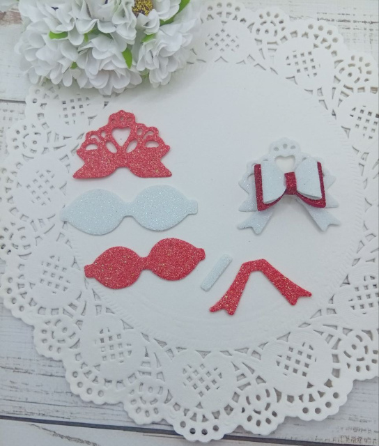 Вирубка бантик бантиком червоно-білий 4,5*4,7 см з фоамірану з глітером,набір деталей.