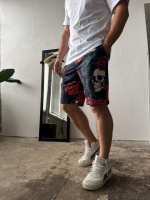 Трендові бежеві чоловічі літні трикотажні шорти з яскравим мультяшним принтом