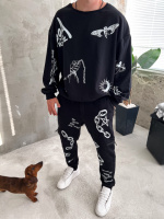 Костюм світшот штани дтф чорного кольору стильний оверсайз