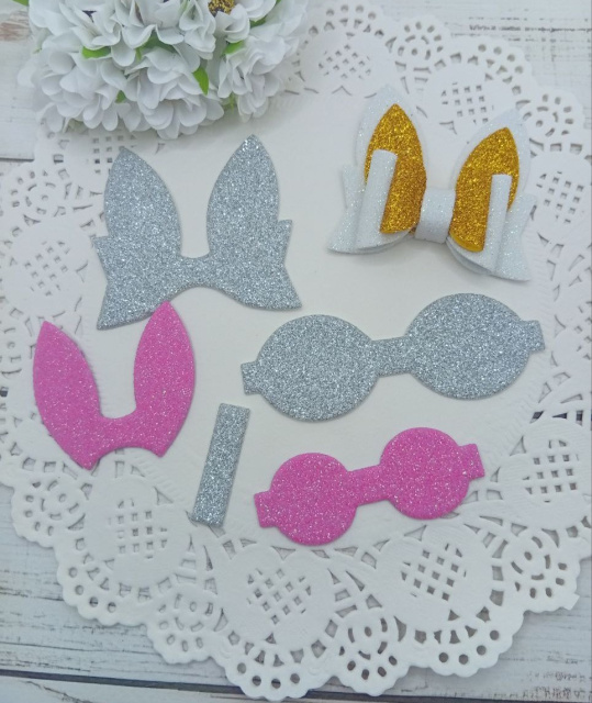Вирубка бантик «Зайчик» срібно-рожевий 6*5,7 см з фоамірану з глітером,набір деталей., Рівне