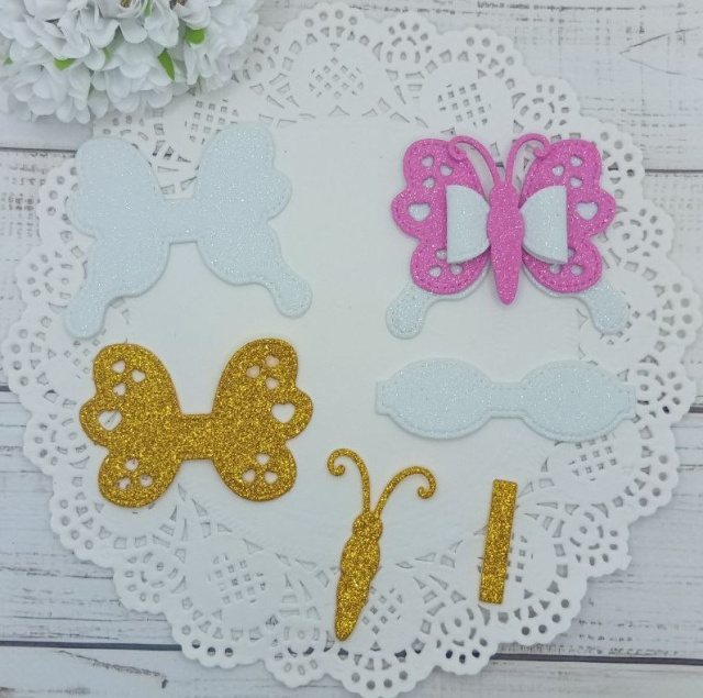 Вирубка бантик метелик біло-золотий 7,5*6,5 см з фоамірану з глітером,набір деталей, Рівне