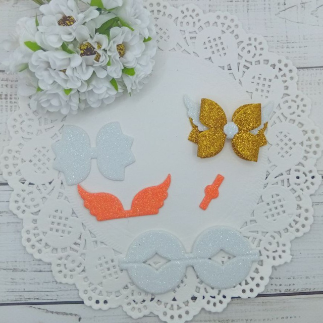 Вирубка бантик з крильцями біло-оранжевий 6,1*4,2 см з фоамірану з глітером,набір деталей., Рівне