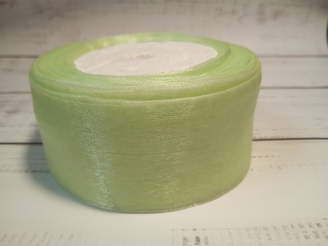 Стрічка органзова. Колір: салатовий. Розмір: 4 см, Рівне
