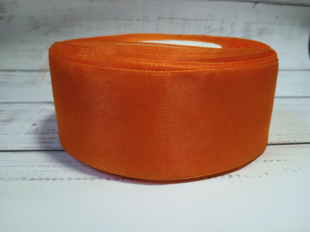 Стрічка органзова. Колір: Оранжевий. Розмір: 4 см, Рівне