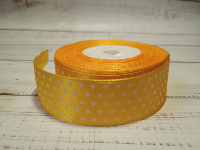 Стрічка атласна в горох. Колір: Темно-жовтий. Розмір: 2,5 см, Рівне