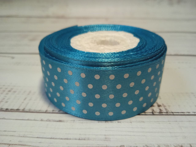 Стрічка атласна в горох. Колір: Голубий. Розмір: 2,5 см, Рівне