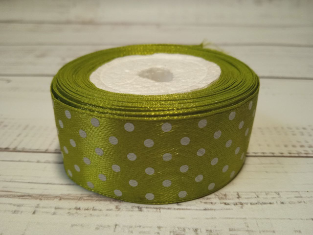 Стрічка атласна в горох. Колір: Оливковий. Розмір: 2,5 см, Рівне